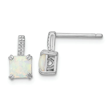 Sterling Silver Rhodium-plated Square White Created Opal Post Earrings