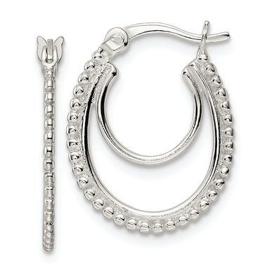 Sterling Silver Beaded Double Oval Hoop Earrings