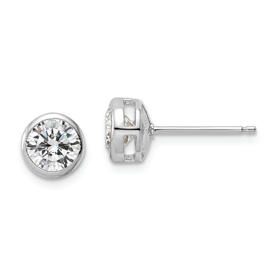 Sterling Silver Polished Rhodium-plated 6mm CZ Bezel Post Earrings