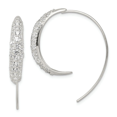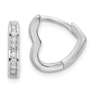 Sterling Silver Polished Rhodium-plated CZ Heart Shaped Hoop Earrings