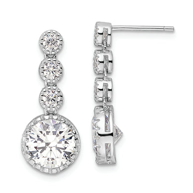 Sterling Silver Rhodium-plated Polished Round CZ Dangle Post Earrings
