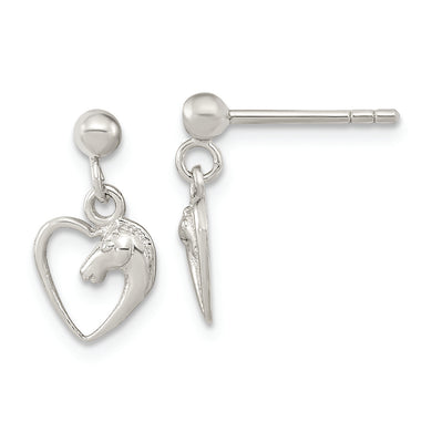 Sterling Silver Open Heart Horse Head Dangle Earrings