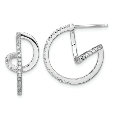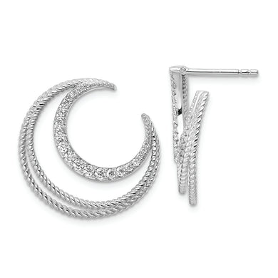 Sterling Silver Rhodium-plated CZ Textured Tail Post Earrings