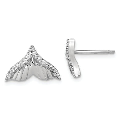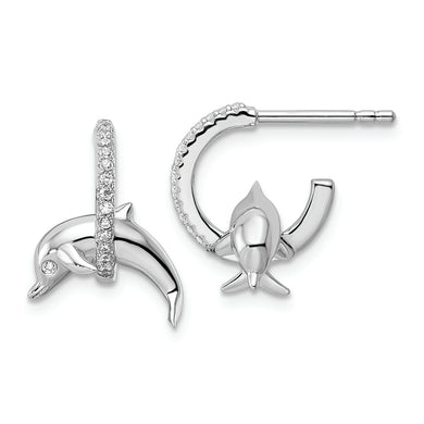Sterling Silver Rhodium-plated CZ Dolphin Post Earrings