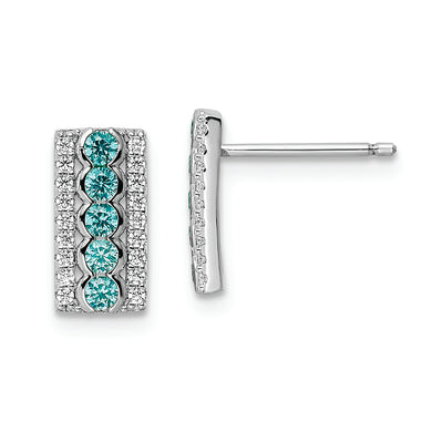 Sterling Silver Rhodium plated Aqua & White CZ Post Earrings