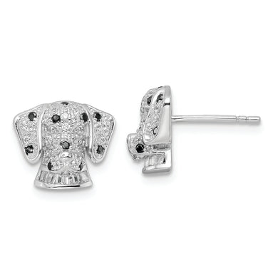 Sterling Silver Rhodium-plated Polished CZ Dalmatian Head Post Earrings
