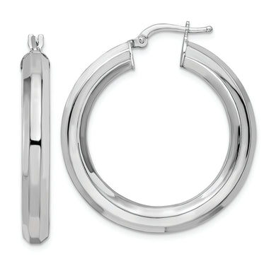 Sterling Silver Rhodium-plated 5x34mm Octagon Tube Hoop Earrings