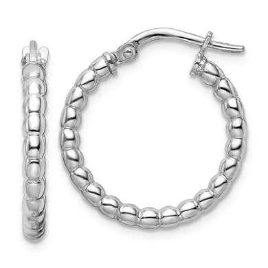 Sterling Silver Rhodium-plated Polished 2.25mm Beaded Hoop Earrings