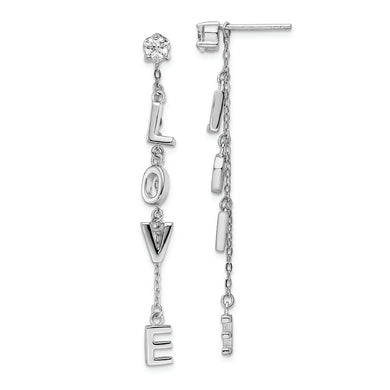 Sterling Silver Rhodium-plated Polished LOVE CZ Dangle Post Earrings