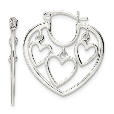 Sterling Silver 3-Hearts Hoop Earrings