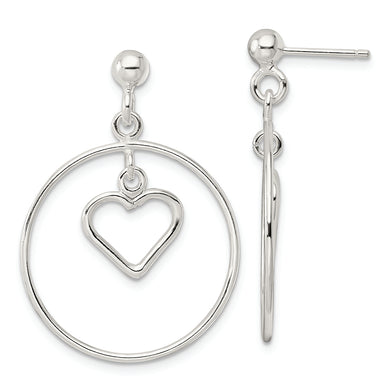 Sterling Silver Polished Circle w/Dangle Heart Post Earrings