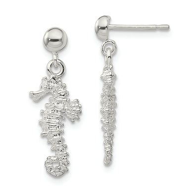 Sterling Silver Polished 3D Seahorse Dangle Post Earrings