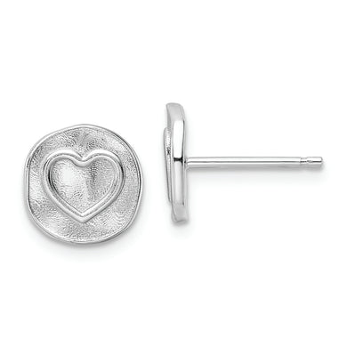 Sterling Silver Rhodium-plated Heart in Satin Circle Post Earrings