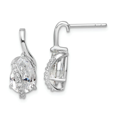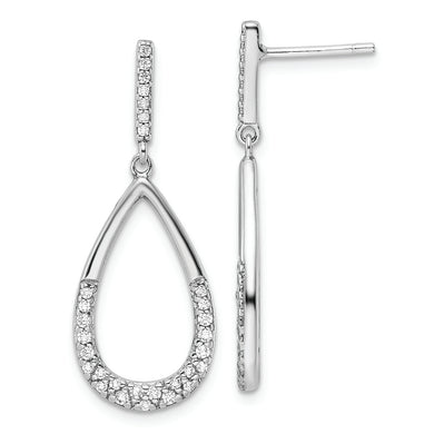 Sterling Silver Rhodium-plated Polished CZ Teardrop Dangle Post Earrings
