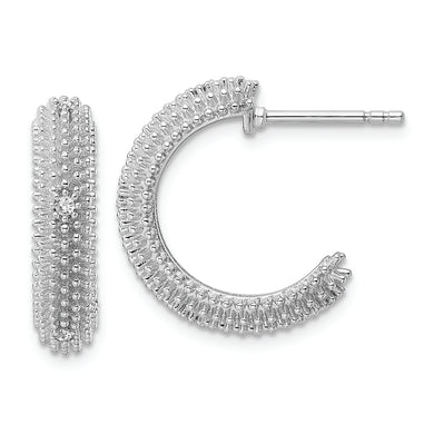 Sterling Silver Rhodium-plated CZ Post Hoop Earrings