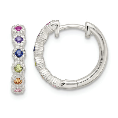 Sterling Silver Polished Multicolor CZ Hinged Hoop Earrings