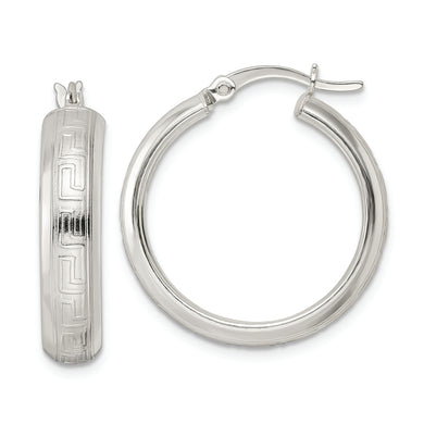 Sterling Silver Polished Greek Key Circle Hoop Earrings