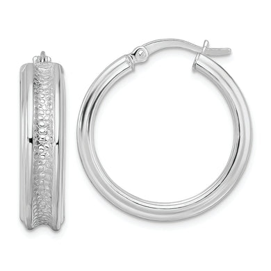 Sterling Silver Polished and Textured Circle Hoop Earrings
