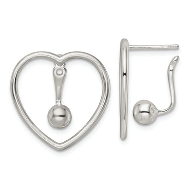 Sterling Silver Polished Heart w/Drop and Dangle Ball Threader Post Earring
