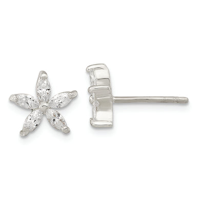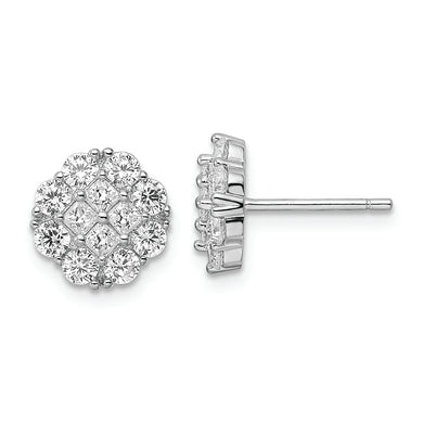 Sterling Silver Rhodium-plated Polished Flower Cluster CZ Post Earrings