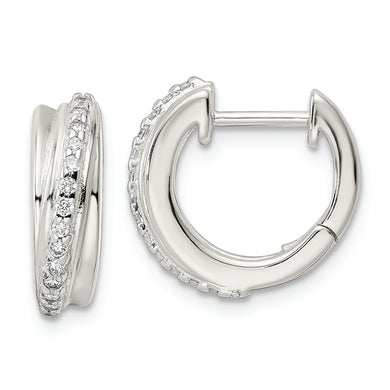 Sterling Silver Polished CZ Hinged Hoop Earrings