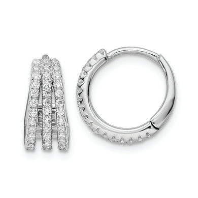 Sterling Silver Rhodium-plated Polished Triple Row CZ Hinged Hoop Earrings