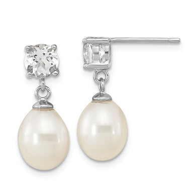 Sterling Silver Rh-pl W. Topaz 7-10mm Wht Teardrop FWC Pearl Earrings