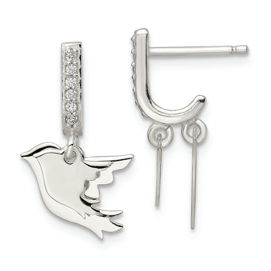 Sterling Silver 2 Birds CZ J-Hoop Post Earrings