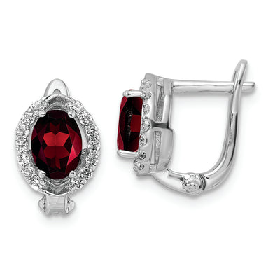 SS RH-plated 2.32t.w. Garnet/White Topaz Oval Hinged Earrings