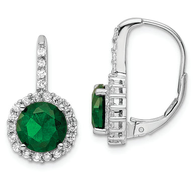 Sterling Silver Cheryl M Rhod-pl Imit Emerald & CZ Leverback Earrings