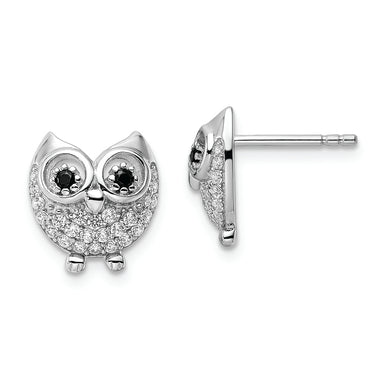 Sterling Silver Rhodium-plated Black & White CZ Owl Earrings