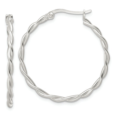 Sterling Silver Satin Twisted Hoop Earrings