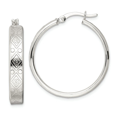 Sterling Silver Polished Design Circle Hoop Earrings