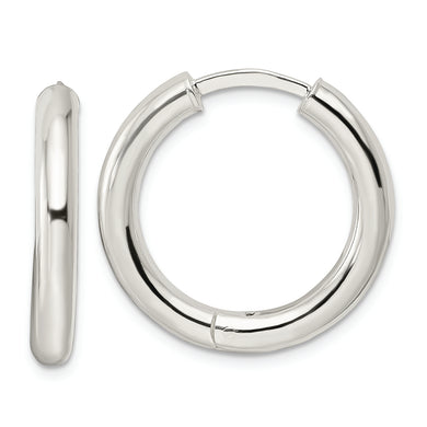 Sterling Silver Polished 3.5x25mm Hinged Tube Hoop Earrings
