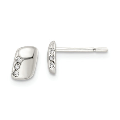 Sterling Silver Polished Rectangle and CZ Post Earrings
