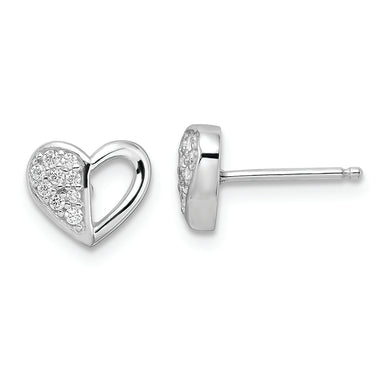 Sterling Silver Rhodium-plated CZ Heart Post Earrings