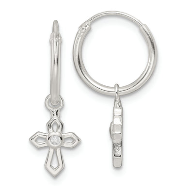 Sterling Silver Polished CZ Cross Endless Hoop Earrings