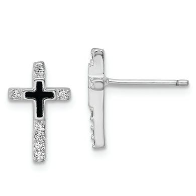 Sterling Silver RH-plated Enamel CZ Cross Post Earrings