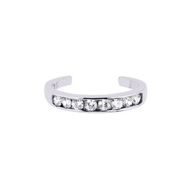 Silver CZ Bypass Toe Ring with Round Solitaire CZ