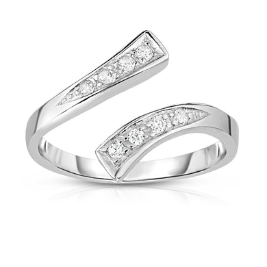 Silver Bypass Toe Ring with Two Bezel Set CZ