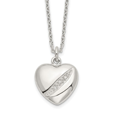 Sterling Silver CZ 16in w/2in ext Heart Necklace