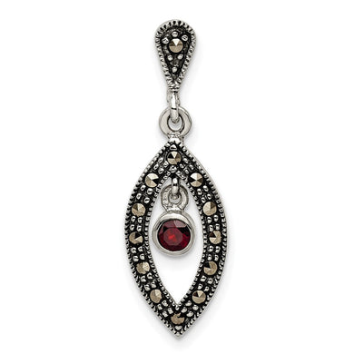 Sterling Silver Antiqued Marcasite & Red Glass Stone Pendant