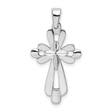 Sterling Silver Rhodium-plated Polished Garnet Cross Pendant
