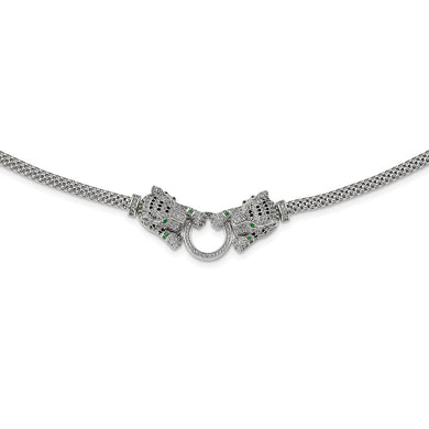 Sterling Silver Rhodium-plated Polished Tigers Holding Ring CZ Necklace