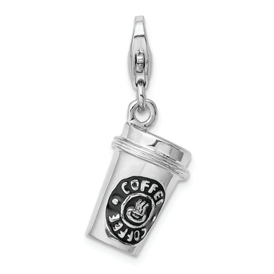 Sterling Silver Amore La Vita Rhodium-pl 3-D Enameled Coffee Cup Charm