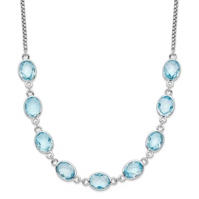 Sterling Silver Rhodium-plated Polished Blue Topaz w/2 in ext. Necklace