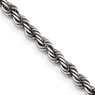 Sterling Silver Ruthenium-plated 3mm Rope Chain