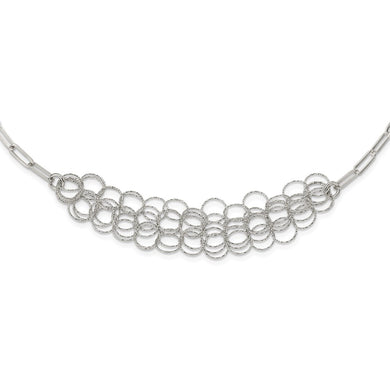 Sterling Silver Rhodium-plated Polished/Textured Circles Necklace