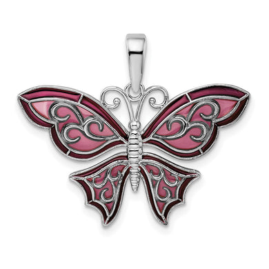 Sterling Silver Polished Enameled Purple Butterfly Pendant