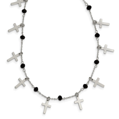 Sterling Silver Rhodium-plated Black Crystal Cross w/ 1.25in ext. Necklace
